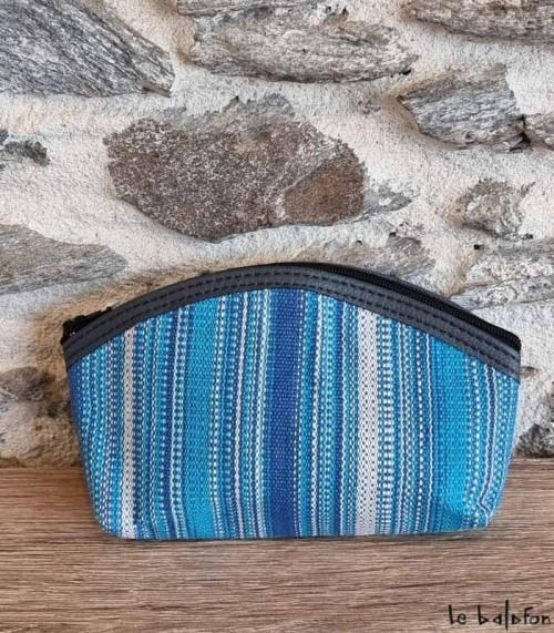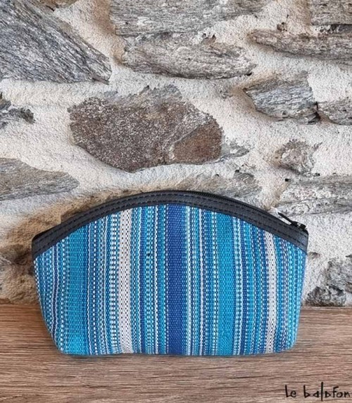 Porte-monnaie ethnique en coton tissé. Création de Sidonie artisan-créatrice de Ouagadougou. Elle travaille principalement le coton tissé et le "Faso Dan Fani", tissu traditionnel du Burkina-Faso, et crée des accessoires aussi divers que sacs, pochettes, trousses, porte-monnaie.