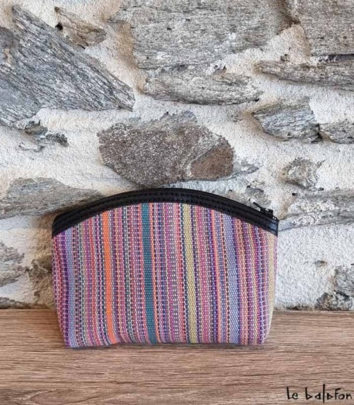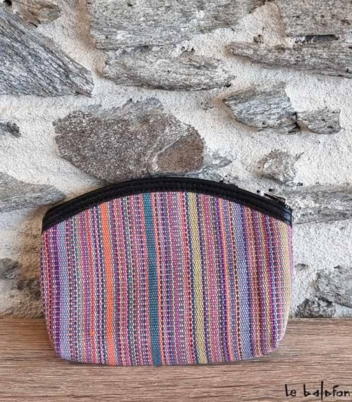 Porte-monnaie ethnique en coton tissé. Création de Sidonie artisan-créatrice de Ouagadougou. Elle travaille principalement le coton tissé et le "Faso Dan Fani", tissu traditionnel du Burkina-Faso, et crée des accessoires aussi divers que sacs, pochettes, trousses, porte-monnaie.